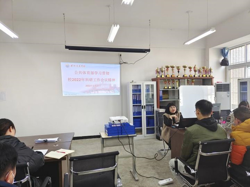 2022年2月23日下午,公共体育部在东校区D座101室召开了主题为“学习贯彻校2022年科研工作会议精神”的专题会议。会议由公共体育部副主任梁卫军主持,副主任崔萃及公共体育部全体教师参加。